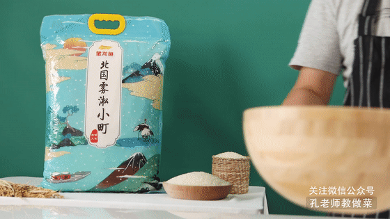 1.將金龍魚北國霧淞小町大米與糯米按照1:1的比例混合,倒入清水中。(這樣的比例口感好,也不至于太過粘糯,喜歡粘糯一點(diǎn)的可以按1:2的比例。)淘洗大米2-3次至水清,再加少許清水浸泡1小時(shí),讓米粒吸飽水分。