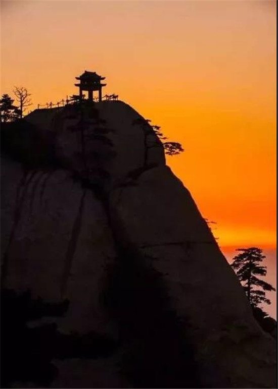 在華山,你看到的太陽不是如海平面上一躍而出,更不是像在其他山峰那樣冉冉升起。在華山這個武俠名山面前,太陽竟是以一種近乎膽怯的動作,偷窺一般緩緩探出一線,然后又把自己籠進云層后躲藏起來,當人們千呼萬喚許久,這才伸出頭來,此時,華山東峰的仙掌倚天壁立,早已在旁守候多時了。