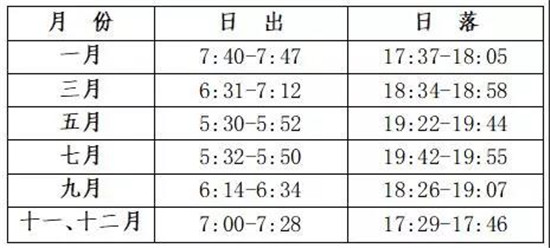 華山日出、日落時間