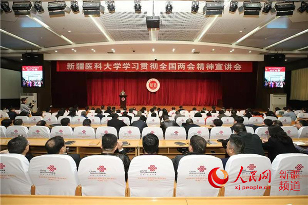 3月17日上午,新疆醫(yī)科大學會議廳內(nèi)座無虛席,4位出席十三屆全國人大二次會議的新疆全國人大代表返回烏魯木齊后,第一時間在新疆醫(yī)科大學開展全國兩會精神宣講。
