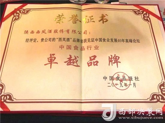 西鳳酒獲得 “中國(guó)食品行業(yè)卓越品牌”光榮稱號(hào)