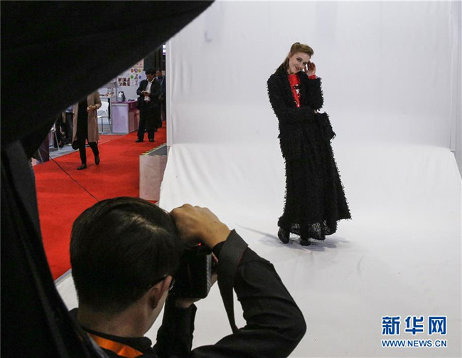 這是2018年11月9日,在中國(guó)上海的首屆中國(guó)國(guó)際進(jìn)口博覽會(huì)上,模特展示意大利時(shí)裝。 新華社記者 張玉薇 攝