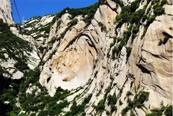 古人云:“山無石不奇,無純石不大奇”。華山奇石當屬“大奇”,雄奇瑰麗,風姿獨具,能令天下人“一見換神骨”。唐詩人孟郊《游華山云臺觀》詩贊華山是“華岳獨靈異,草木恒新鮮。山盡五色石,水無一色泉”。華山的主體是由一塊純粹完整的巨型花崗巖構(gòu)成,呈柱體狀,巍然屹立,四方如削,峭陡挺拔,高聳云天。正如朱德詩中所說“華山直挺黃河邊,雄視東方函谷關(guān)”,大石大奇的壯觀氣勢可謂舉世獨具。其次,它的三座主峰合攏相擁而形成的蓮花狀山勢,也是“石之大奇”的展現(xiàn)。前人說三峰“一石以為莖,二峰以為葉”,形象地狀摹出了華山三峰形似蓮花的狀態(tài)和高表云天,怒放群山的博大與宏偉。另外,由于地殼的裂變斷震,許多似人似物的象形奇石散落于景區(qū)各處,形成了獨具特色,饒有興趣的奇石景觀,而且這些奇石大多都伴隨著一個神奇而美麗的傳說故事,更增添了這類景觀的生動趣味和神秘色彩??梢哉f,華山之石,無石不奇。