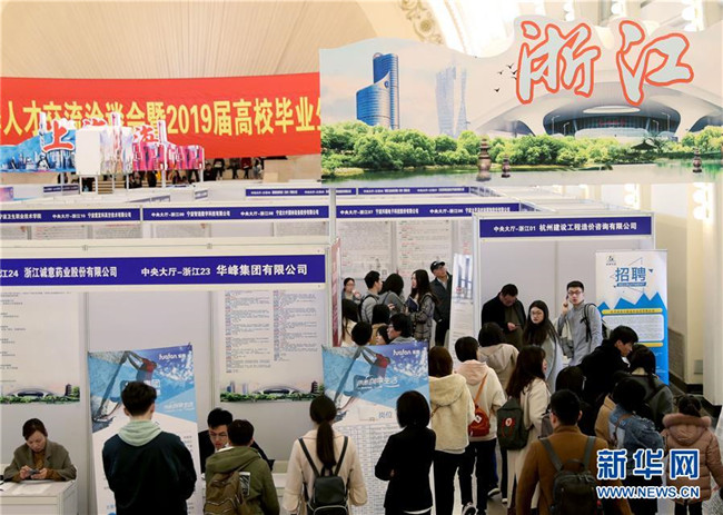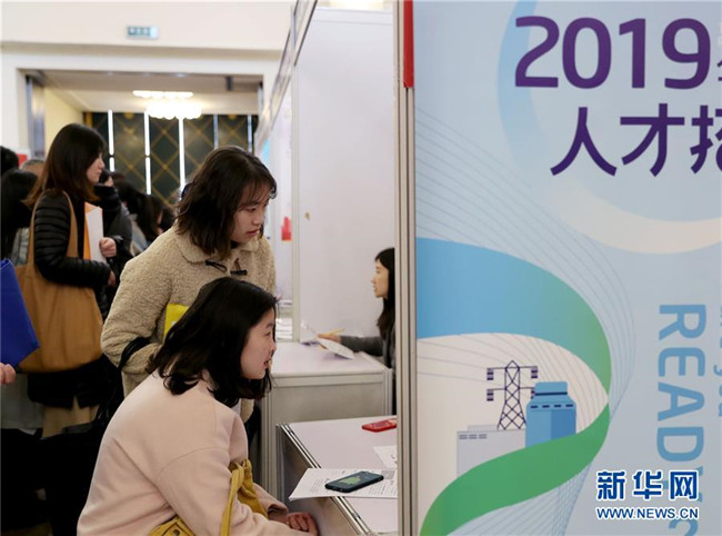 3月24日,求職者在招聘會上了解崗位信息。當(dāng)日,由上海、江蘇、浙江、安徽聯(lián)合舉辦的“長三角地區(qū)春季人才交流洽談會暨2019屆高校畢業(yè)生擇業(yè)招聘會”在上海展覽中心舉行。 新華社記者 劉穎 攝