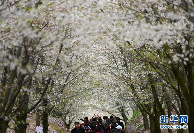 仲春時(shí)節(jié),位于貴州省貴安新區(qū)櫻花觀光園內(nèi)的櫻花競(jìng)相綻放,如白雪般的櫻花海吸引眾多游客前來(lái)賞花觀光。