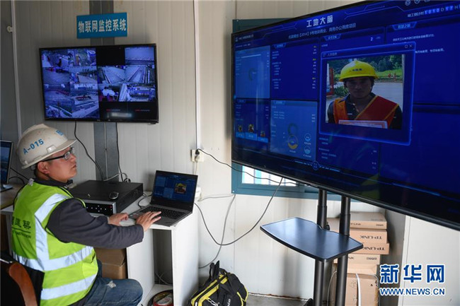 3月26日,工作人員在“浙江智慧之門”項目工地察看“工地大腦”的實時數(shù)據(jù)。據(jù)了解,“工地大腦”匯總了人員、設備、物料、進度、環(huán)境等要素。新華社記者黃宗治攝