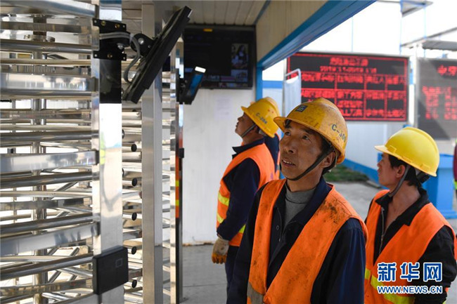 3月26日,工人在實名制通道使用人臉識別技術進入“浙江智慧之門”項目工地。新華社記者黃宗治攝