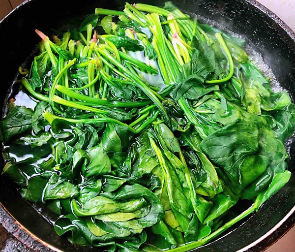 2.鍋中燒開(kāi)水放入菠菜焯水至菠菜剛剛變色即可時(shí)間不可過(guò)長(zhǎng)