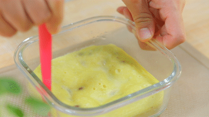 8.模具底部刷 油,鋪一層油紙。 家里如果沒有模具,就拿一個(gè)耐高溫的玻璃蒸碗吧!