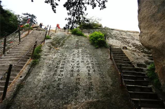 華山系一塊完整碩大的花崗巖體構(gòu)成,歷史衍化可追溯至27億年.“太華之山,削成而四方,其高五千仞,其廣十里。”華山之險居五岳之首,登山之路蜿蜒曲折,長達12公里,到處都是懸崖絕壁,有“自古華山一條道”的說法。