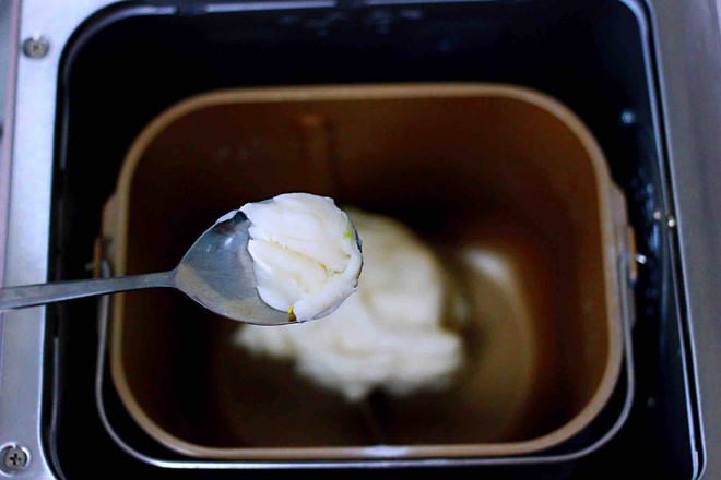 7.和好的面團加入豬油,再次啟動面包機的和面程序進行和面,加了豬油做的餅香酥軟脆喲。