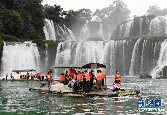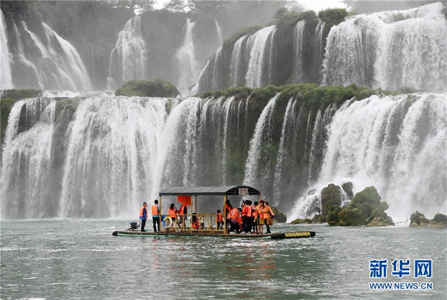 近日,隨著降雨增多,位于中越邊境的廣西大新縣德天瀑布水量增大,吸引大批游客前來(lái)觀光游覽。新華社記者 陸波岸 攝
