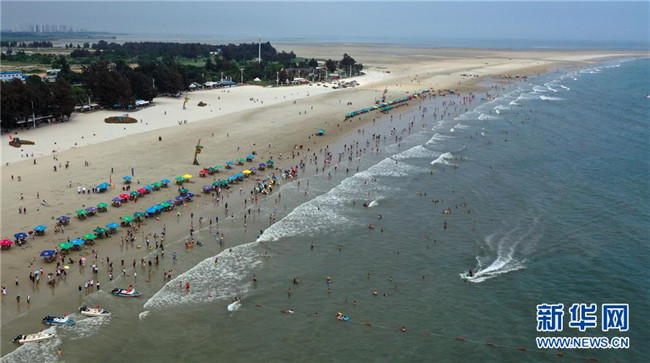 近日,隨著氣溫回升,眾多游客來到廣西北海銀灘旅游,享受碧海藍(lán)天帶來的樂趣。 新華社記者 張愛林 攝