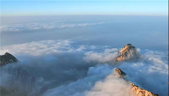 華山最高的山峰,有海拔2154.9米,站在南峰頂,一覽眾山小,遠(yuǎn)處就是連綿不斷的秦嶺山脈。