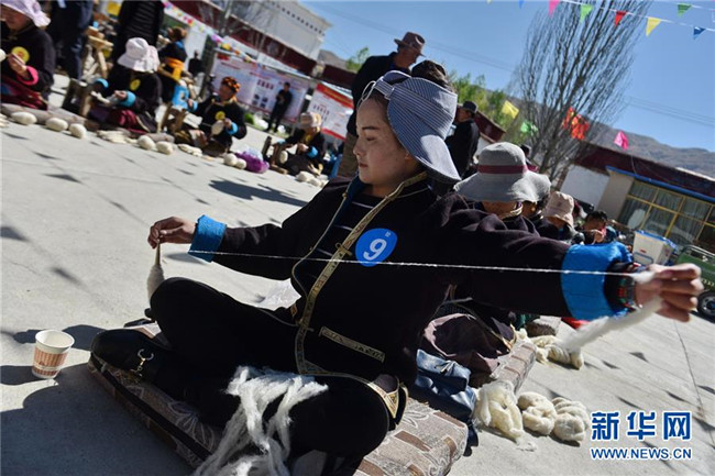 西藏貢嘎:氆氌制作技能比賽迎“五一”