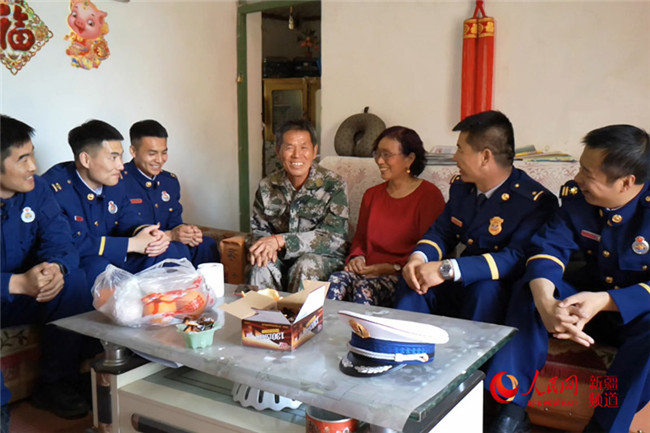 “媽媽,我們祝您母親節(jié)快樂(lè)!”在胡阿利的家里,六名森林消防員圍著蛋糕為胡媽媽送上了祝福。