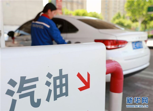 5月13日,河北省邢臺(tái)市任縣一家加油站的工作人員在給車輛加油。新華社發(fā)(宋杰 攝)