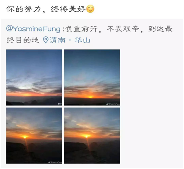 逝者如斯夫,不舍晝夜。何不趁著俯仰之間的時光奮力攀登,掙破誘惑的鎖鏈。以夢想為動力前行,以樂觀為能量堅持。只要堅持,險峰就終會被踩在腳下,無限風(fēng)光也不過是眼前之景。當(dāng)你橫下心,壯起膽,登上華山之巔,放眼回顧,華山的一峰一巒、一石一木,都變得更加峻拔、親近起來。