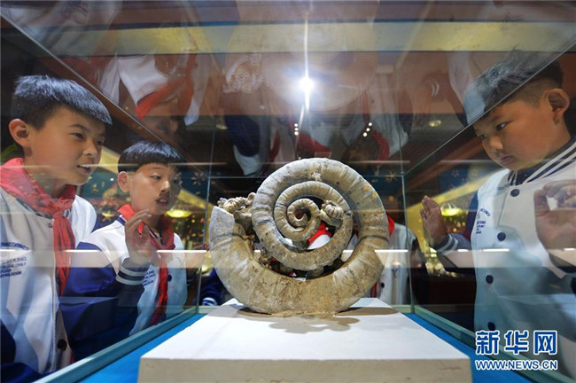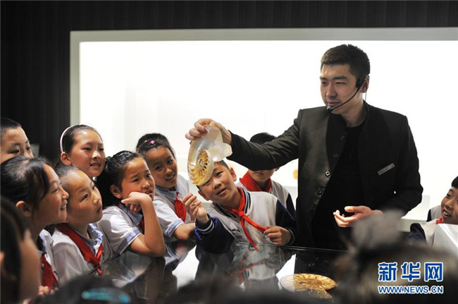 5月16日,學生們在青島貝殼博物館了解鸚鵡螺構(gòu)造。新華社發(fā)(王海濱 攝)