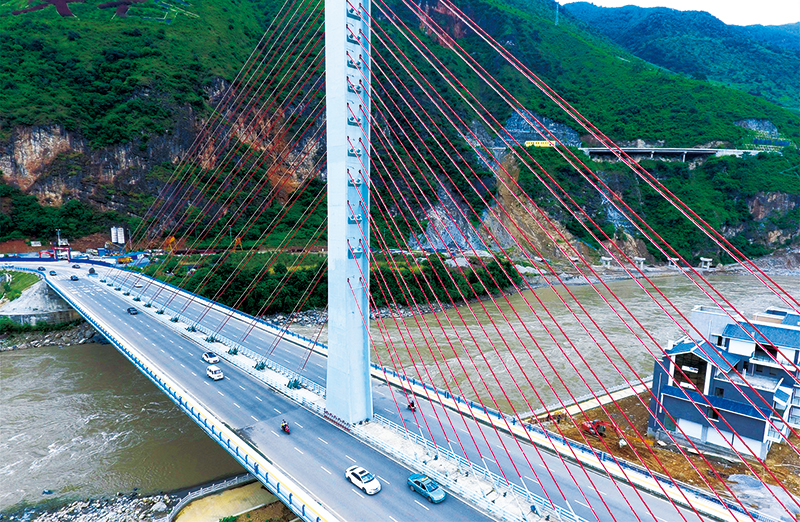 黨的十八大以來,我國把扶貧開發(fā)擺在突出位置,脫貧攻堅取得了決定性進展,穩(wěn)步向歷史性解決絕對貧困和全面建成小康社會邁進。云南省怒江傈僳族自治州98%以上的國土是高山峽谷,山勢陡峭,過去群眾要依靠溜索跨越怒江,出行極為困難。如今,怒江傈僳族自治州交通狀況得到極大改善,許多溜索被橋梁所取代。上圖是2013年2月2日拍攝的瀘水市六庫鎮(zhèn)雙米地村的一名村民從集市上采購年貨歸來,依靠溜索過怒江(新華社記者 王長山/攝)。下圖是2016年9月9日拍攝的雙向六車道大型公路跨江橋梁——通達橋(新華社記者 胡超/攝)。