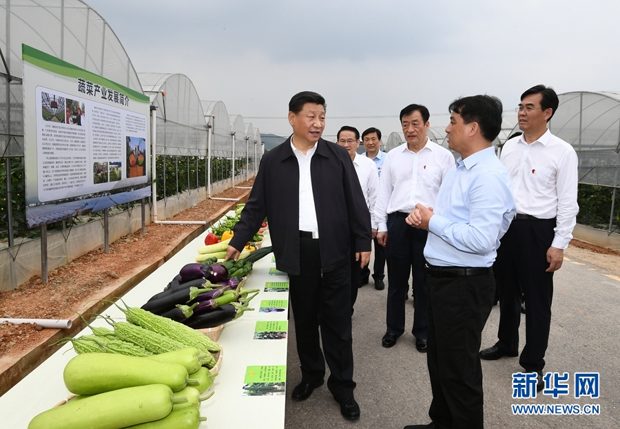 5月20日至22日,中共中央總書記、國家主席、中央軍委主席習近平在江西考察,主持召開推動中部地區(qū)崛起工作座談會并發(fā)表重要講話。這是習近平在贛州市于都縣梓山富硒蔬菜產(chǎn)業(yè)園考察調(diào)研。 新華社記者 謝環(huán)馳 攝