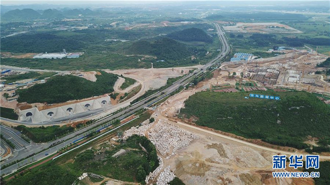 這是5月19日無人機拍攝的貴州省貴安新區(qū)“華為云”數(shù)據(jù)中心建設(shè)現(xiàn)場(以道路為界右)和騰訊貴安七星數(shù)據(jù)中心(左)。新華社記者 歐東衢 攝