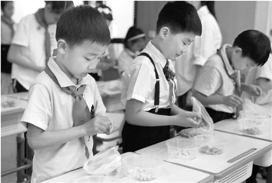 二(3)班學生莊千譽的爸爸對此也有同感。莊爸爸告訴記者,一個月下來,只要家里吃毛豆,幾乎全是小莊剝的,每次爸爸買來2斤毛豆,小莊一個人就可以剝完一大半。“一開始他剝得很費勁,咬著牙才能摳出一顆豆子。這一個月家里買了6次毛豆,經(jīng)過這幾次的鍛煉,現(xiàn)在小莊剝豆子越來越輕松,手法也越來越靈巧。”