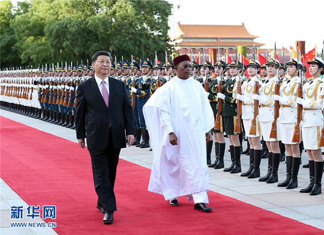 5月28日,國(guó)家主席習(xí)近平在北京人民大會(huì)堂同尼日爾總統(tǒng)伊素福舉行會(huì)談。這是會(huì)談前,習(xí)近平在人民大會(huì)堂東門(mén)外廣場(chǎng)為伊素福舉行歡迎儀式。 新華社記者 劉衛(wèi)兵 攝