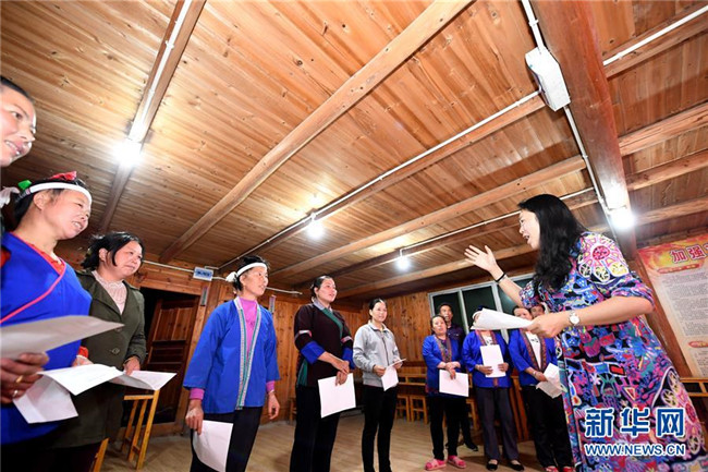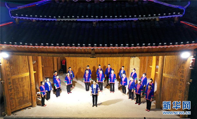 5月27日晚,在廣西柳州市三江侗族自治縣良口鄉(xiāng)燕茶村,吳純娟與村民在戲臺上排練侗族大歌。 今年42歲的吳純娟是廣西柳州市三江侗族自治縣文化館的一名文藝輔導(dǎo)員。她從小喜歡唱歌,工作后接觸并喜歡上侗族大歌,2005年起專門拜師學(xué)唱侗族大歌。如今,侗族大歌成為她主要輔導(dǎo)和傳承的音樂之一。今年3月中旬,她成為三江縣良口鄉(xiāng)燕茶村一名駐村工作隊員,侗族大歌是她扶貧的法寶。 燕茶村位于侗鄉(xiāng)大山深處的山腰上,村民們雖然熱愛歌舞,但卻無人會唱侗族大歌。吳純娟進(jìn)村后,當(dāng)即在村里開設(shè)了侗族大歌免費培訓(xùn)班,利用晚上及其他工作之余的時間教村民唱侗族大歌,受到村民歡迎。如今,燕茶村專門成立“侗族大歌文藝隊”,隊員從一開始的20人迅速發(fā)展到33人。村部會議室、村里的戲臺、還有山上的千畝茶園……他們的歌聲幾乎傳遍了燕茶村的每個角落。 “這段時間,吳老師還利用休息時間教學(xué)校老師和學(xué)生唱侗族大歌。”燕茶村燕子小學(xué)老師楊雪連說,學(xué)校里從來沒有音樂老師,吳老師在學(xué)校里開班,師生們學(xué)習(xí)熱情也非常高。 吳純娟說:“每首侗族大歌歌唱的都是自然、勞動和愛情之美,傳承民族文化的同時,我更希望激發(fā)貧困山區(qū)群眾對美好生活的向往,提高自信,共同脫貧致富。”據(jù)了解,侗族大歌是侗族地區(qū)一種多聲部、無指揮、無伴奏、自然和聲的原生態(tài)音樂。2005年,侗族大歌被列入我國第一批非物質(zhì)文化遺產(chǎn)名錄,2009年被列入世界人類非物質(zhì)文化遺產(chǎn)代表作名錄。