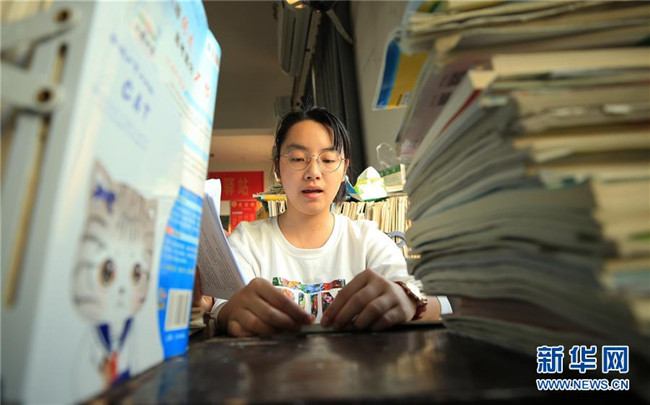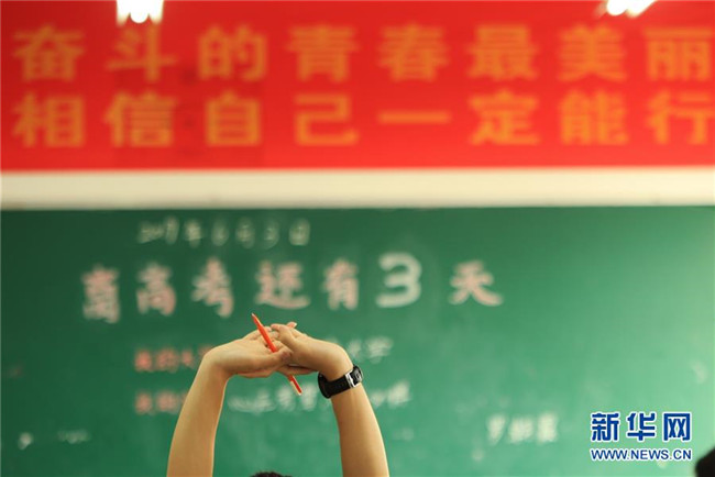 6月4日,在湖南省衡陽縣第一中學,一名高三學生自習間隙伸腰活動。新華社發(fā)(曹正平攝)