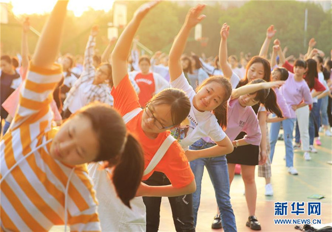 6月4日,在湖南省衡陽縣第一中學,高三學生做早操。 新華社發(fā)(曹正平攝)