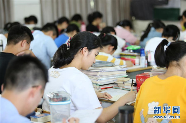 6月4日,湖南省衡陽縣第一中學的高三學生在教室早自習。 新華社發(fā)(曹正平攝)