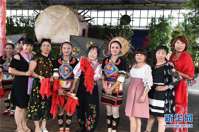 基諾族大鼓舞演員合影(6月1日攝)。