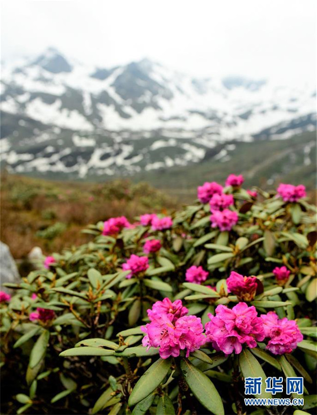 雪山腳下盛開的高山杜鵑(5月31日攝)。新華社記者 張汝鋒 攝