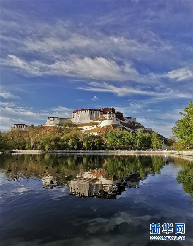 藍天白云下的布達拉宮(4月30日攝)。新華社記者 張汝鋒 攝