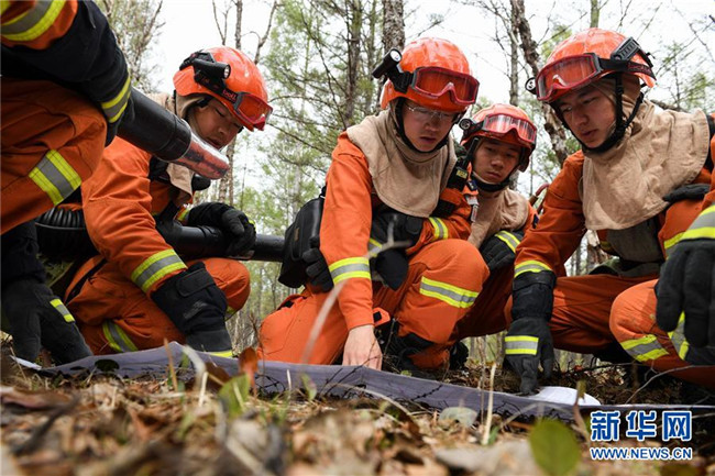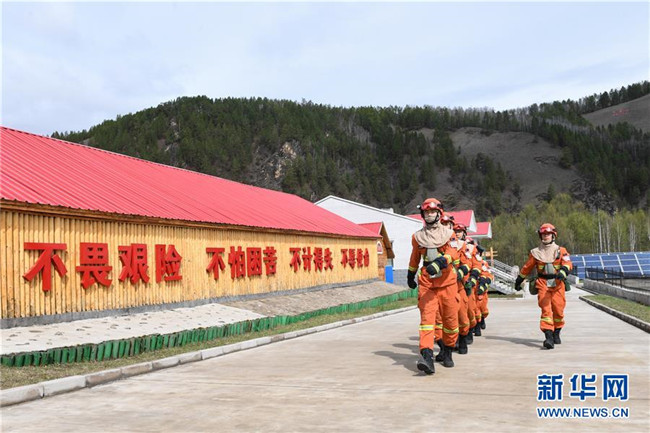 奇乾中隊(duì)的消防隊(duì)員在營(yíng)地內(nèi)訓(xùn)練(5月15日攝)。新華社記者 劉磊 攝