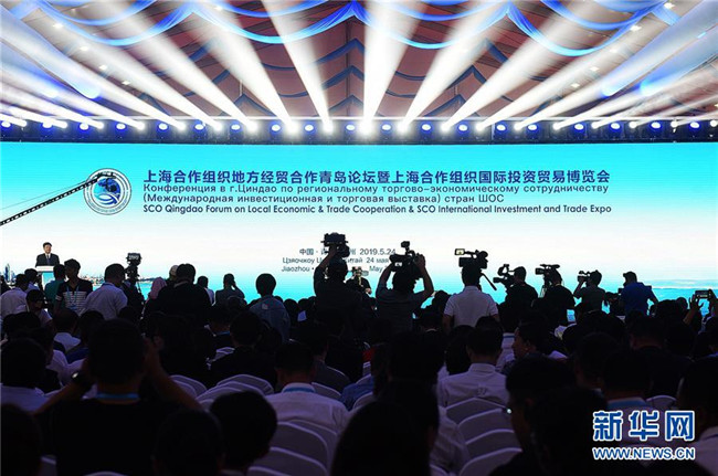 這是5月24日拍攝的首屆上海合作組織地方經(jīng)貿(mào)合作青島論壇暨上海合作組織國(guó)際投資貿(mào)易博覽會(huì)開幕式。