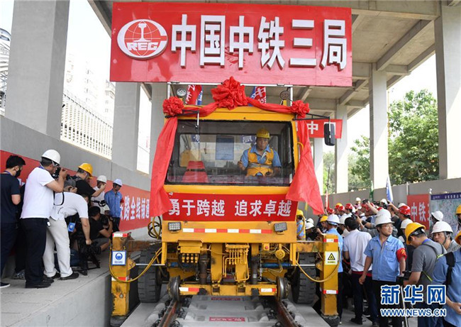 12日上午,京張高鐵最后一根鋼軌在中鐵三局WZ-500型無砟軌道鋪軌機牽引下準確落在清華園隧道的枕木上,精調之后,軌距誤差在正負1毫米之內。被譽為中國鐵路發(fā)展“集大成者”、智能高鐵示范工程的京張高鐵實現全線軌道貫通。