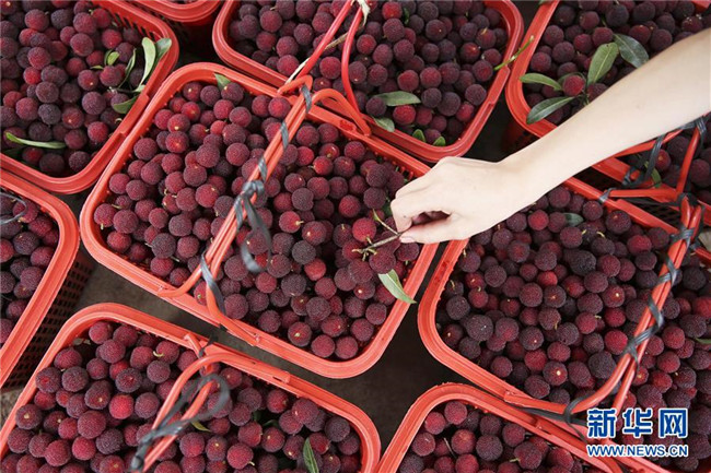 6月15日,在丹寨縣揚武鎮(zhèn)老冬村楊梅種植園,果農在整理準備出售的楊梅。新華社發(fā)(黃曉海 攝)