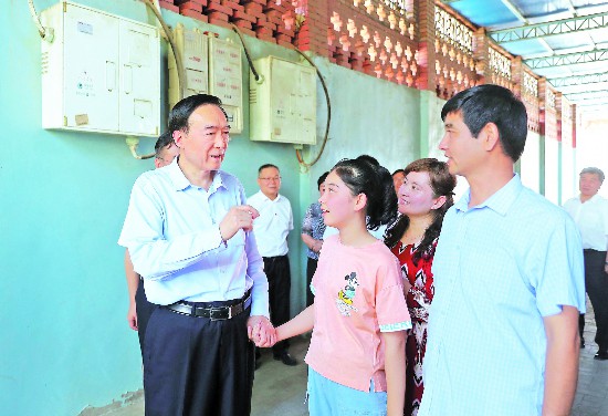 6月18日,新疆維吾爾自治區(qū)黨委書記陳全國到吐魯番市調(diào)研。這是陳全國在吐魯番市高昌區(qū)亞爾鎮(zhèn)英買里村,走訪慰問阿里木·吐爾遜一家,并仔細(xì)詢問生產(chǎn)生活、子女就學(xué)等情況。崔志堅(jiān) 攝