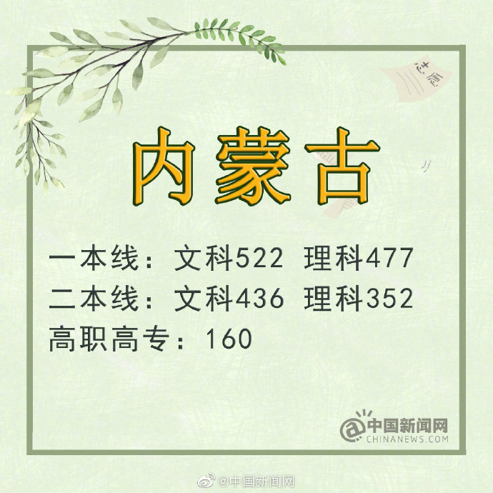 內(nèi)蒙古:文科一本線522分 理科477分