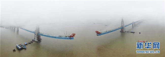 當(dāng)日,滬通長江大橋南主塔順利封頂。至此,該橋兩座高達(dá)330米的主塔全部建成,標(biāo)志著世界最大跨度公鐵兩用斜拉橋建設(shè)取得了關(guān)鍵性進(jìn)展。滬通長江大橋全長11072米,主橋長2296米,主跨1092米,是滬通鐵路全線的控制性工程,設(shè)計(jì)為上層6車道高速公路,下層4線鐵路。新華社發(fā)(許叢軍攝)