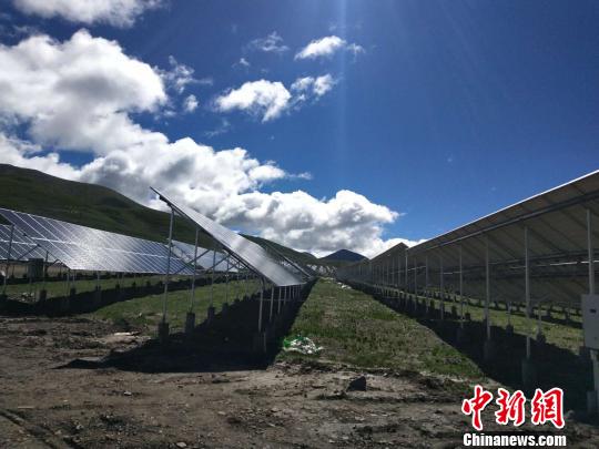圖為青海果洛藏族自治州瑪沁縣29.1兆瓦村級扶貧光伏電站一隅。 雒文清 攝