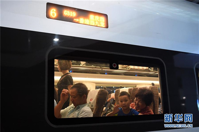 7月11日,一位小朋友在G319次列車上向窗外揮手。當(dāng)日,重慶至香港直達(dá)高鐵正式開(kāi)通,此次首發(fā)的G319次復(fù)興號(hào)列車運(yùn)行速度350km/h,沿途經(jīng)停遵義、貴陽(yáng)東、桂林西、肇慶東、廣州南和深圳北站。列車由重慶西站至香港西九龍站全程運(yùn)行需7小時(shí)37分鐘,全程票二等座票價(jià)為660元。目前內(nèi)地與香港聯(lián)通的高鐵車站已增加到58個(gè)。新華社記者唐奕攝