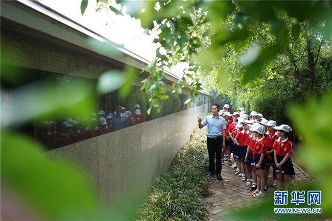 7月13日,河北省邢臺(tái)市巨鹿縣育新小學(xué)學(xué)生在愛(ài)華翰苑碑林參觀。