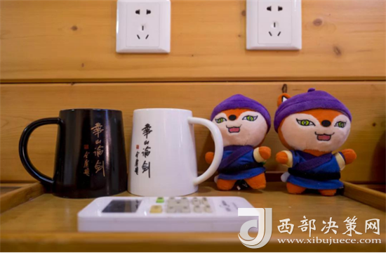 華山文創(chuàng)馬克杯、和“華山吾俠”毛絨公仔點(diǎn)綴在桌上,簡(jiǎn)單明快的這一小片區(qū)域都像是在敘述華山論劍的故事。