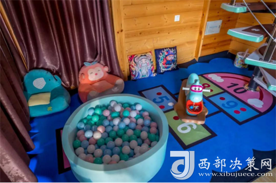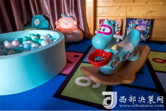 兒童休閑區(qū)以主題鮮明可愛(ài)的厚地毯作區(qū)分。休閑區(qū)有毛絨公仔、積木、卡通抱枕、小木馬、舒服的懶人沙發(fā)和海洋球池,能玩能看,可以說(shuō)這里的兒童設(shè)施已經(jīng)全都“佩奇”(配齊)了。