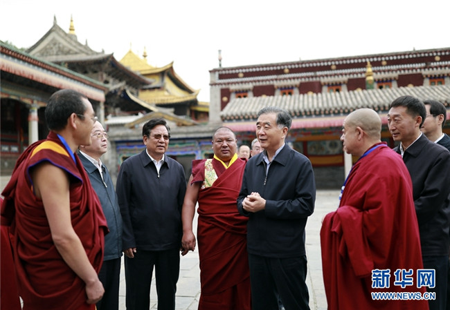 16日至17日,汪洋先后到玉樹、西寧等地,深入扶貧產(chǎn)業(yè)園區(qū)、宗教活動場所了解情況,并主持召開座談會,聽取有關(guān)方面意見建議。汪洋充分肯定近年來青海民族宗教、脫貧攻堅等方面工作取得的成績。他指出,做好民族工作和宗教工作,對維護藏區(qū)社會穩(wěn)定和長治久安具有重要意義。要堅持黨的宗教工作基本方針,突出問題導向,抓住關(guān)鍵環(huán)節(jié),健全寺廟管理長效機制,堅決守住抵御境外勢力滲透的防線。要堅持政府依法管理和宗教界自我管理兩手用力,大力弘揚宗教界愛國愛教優(yōu)良傳統(tǒng),注重發(fā)揮宗教團體和宗教界人士積極作用,完善以戒為師、學修并重、正信正行的內(nèi)部規(guī)范。要適應(yīng)各民族跨區(qū)域流動的新形勢,推動民族工作創(chuàng)新發(fā)展,積極創(chuàng)造各民族共居共學共事共樂的條件,實現(xiàn)更大范圍、更廣領(lǐng)域、更深層次的交往交流交融,努力探索出更多民族團結(jié)進步新鮮經(jīng)驗。