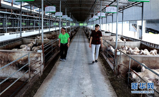 7月21日,在長興德睿生態(tài)農(nóng)業(yè)開發(fā)有限公司,低收入農(nóng)戶在查看湖羊。新華社記者 徐昱 攝