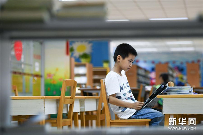 7月20日,一名小朋友在安徽省圖書館看書。 新華社記者 張端 攝